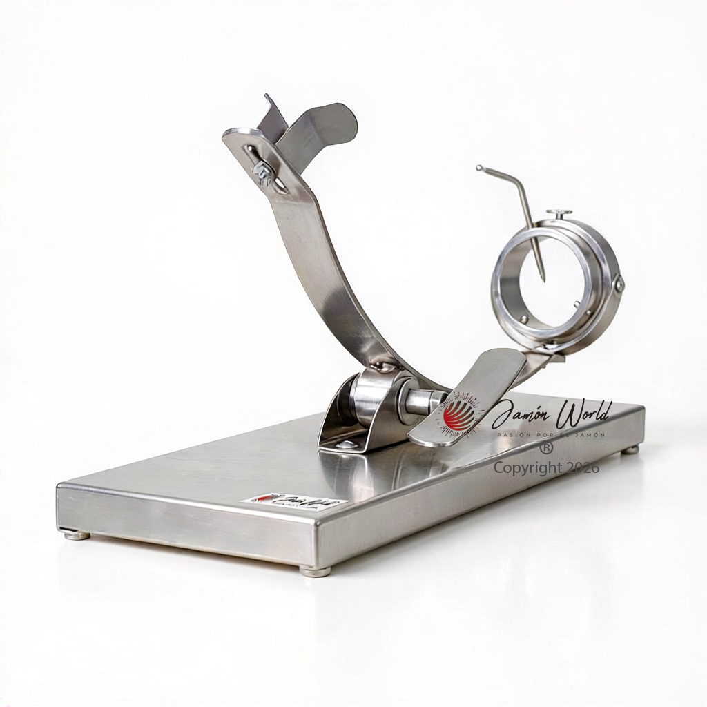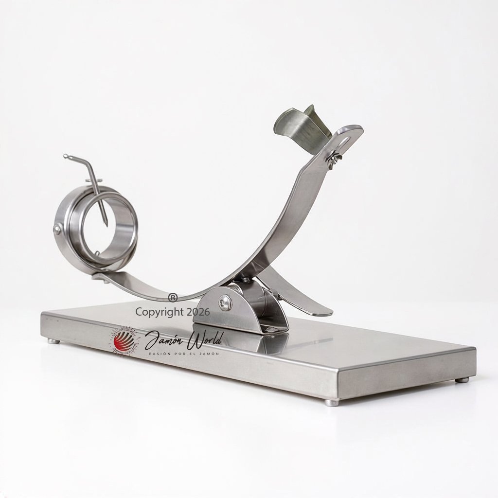 Jamonero 17927 giratorio 360º de acero inoxidable, base también de acero inoxidable.